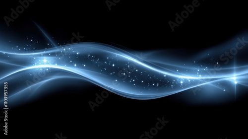 Abstract blue wave with sparkling stars on black background, creating sense of motion and elegance. Perfect for backgrounds or digital designs