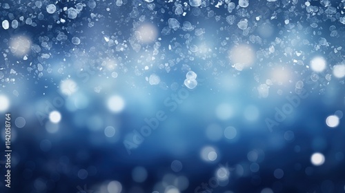Abstract Blue Winter Background with Sparkling Snowflakes