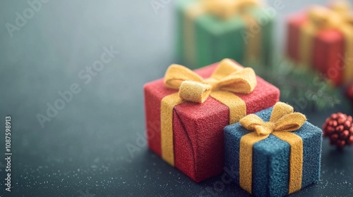 Abstract Christmas Felt Gifts with Bows on Light Background