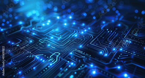 Abstract Circuit Board With Glowing Blue Lights