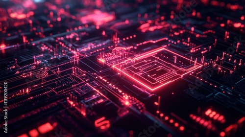 Abstract Circuit Board with Glowing Red Lines