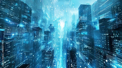 Abstract cityscape with towering buildings