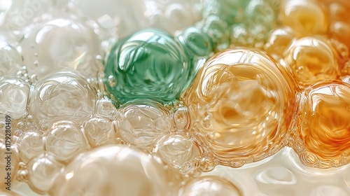 Abstract Close-up of Colorful Bubbles: A Macro Exploration of Fluid Dynamics and Surface Tension