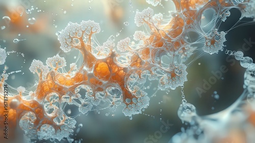 Abstract close-up of vibrat cellular structures, shocasing intricate details ad dynamic forms, ideal forscience, biology, and healhcare themes.