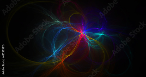 Abstract colorful shiny lines on dark background. Festive background. Digital fractal art. 3d rendering.