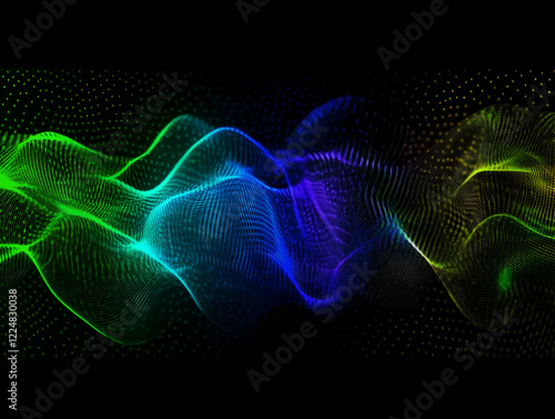 Abstract Colorful Waves Flowing Smoothly on a Black Background with Particles