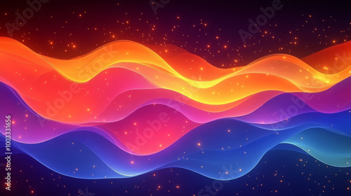 Abstract colorful waves with glowing particles