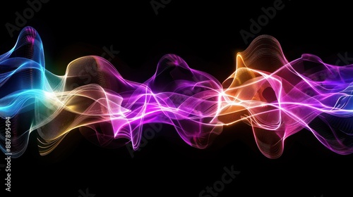 Abstract Colorful Wavy Lines on Black Background
