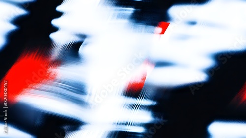 Abstract composition featuring blue white and red textured elements