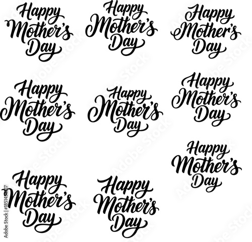 Abstract Continuous Latin Calligraphy Happy Mothers Day Black Silhouette Set