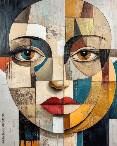 Abstract Cubist Portrait Paintings with Bold Earthy and Teal Tones