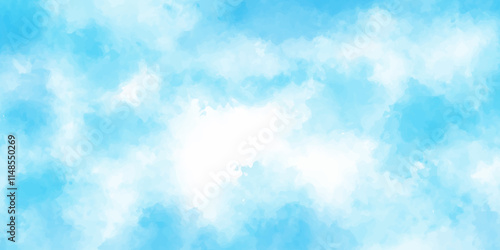 abstract cyan watercolor water splash on a white background. Beautiful sunny sky. Bright sun, white, tiny clouds. cloudy sky background, smoky, Hand painted texture, Creative, modern, design, art, ink