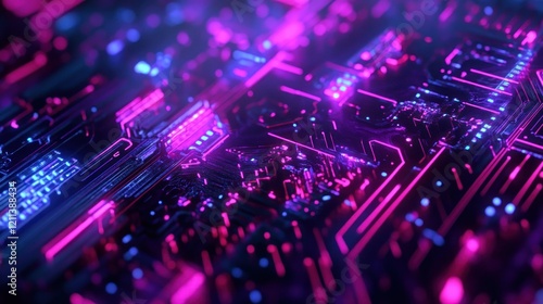 Abstract Cyberpunk Circuit Board: Neon Glowing Pink and Blue Digital Technology