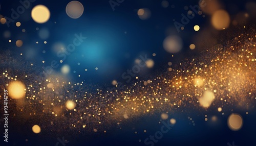 Abstract Dark Blue and Gold Background with Christmas Golden Light Particles