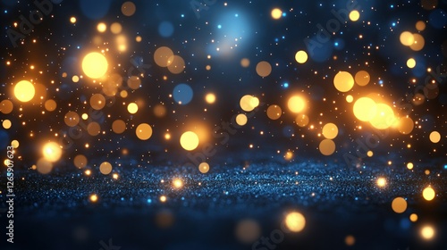 Abstract dark blue background with golden glitter lights