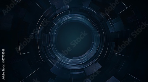 Abstract Dark Blue Geometric Circular Pattern with Glowing Lines