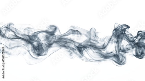 Abstract dark gray smoke wavy lines curling isolated on transparent background