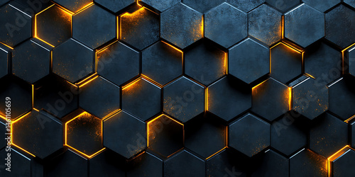 Abstract dark hexagonal pattern with glowing orange lights modern futuristic background wallpaper texture cool tech style