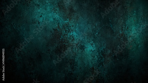 Abstract dark turquoise grunge background. Blue-green grunge banner. Decorative colorful rock texture.