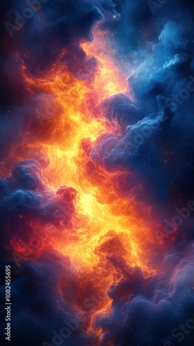 Abstract depiction of fiery cosmic clouds in vibrant colors.