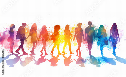 Abstract different colors group of people figures symbolizing diversity and ethnicity. Community of colleagues or collaborators