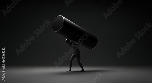 Abstract digital art depicting a human figure bearing a heavy cylindrical load