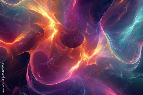 Abstract Digital Artwork Inspired by Plasma with Swirling Luminous Patterns and Vibrant Colors