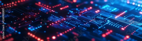 Abstract digital circuit board glowing, technology background, data flow, website banner