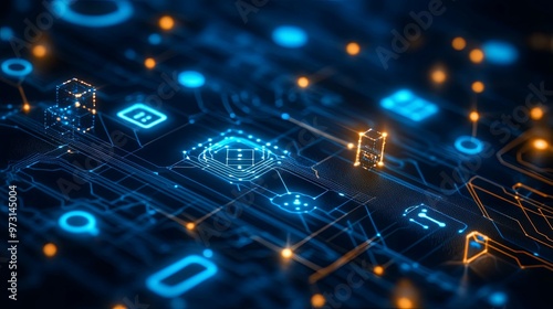 Abstract Digital Circuitry with Glowing Nodes and Data Cubes