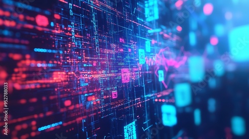Abstract Digital Data Flow with Red and Blue Lights