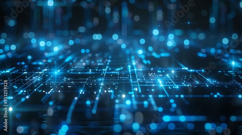 Abstract digital data network background with glowing blue lights, representing technology, connectivity, and futuristic design.