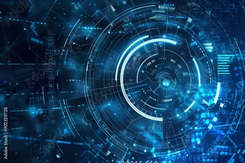 Abstract Digital Interface with Glowing Blue Lines and Data