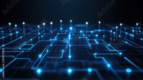 Abstract Digital Network Circuitry glowing blue lines