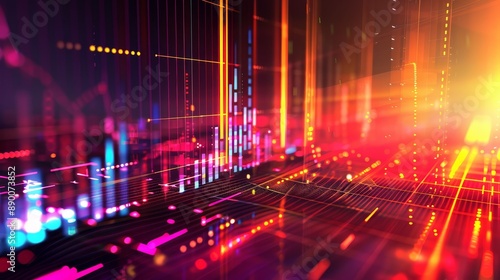Abstract Digital Network Data Flow with Neon Lights - A futuristic abstract background with digital data flowing through a network of lines and glowing neon lights, symbolizing technology, connectivit