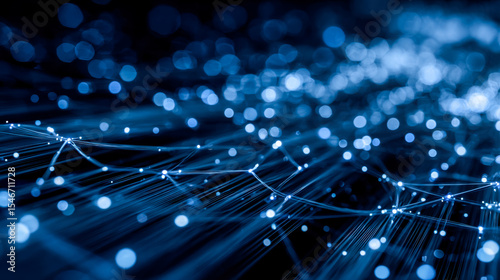 Abstract digital network with glowing nodes and connections in a futuristic blue sci-fi style