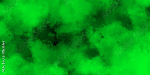 Abstract digital texture featuring intense neon green clouds with scattered patches of soft black shadows. Dark green wall grunge backdrop background texture limestone paint