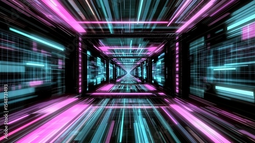 Abstract digital tunnel with vibrant lines