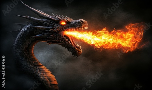 Abstract Fire-Breathing Dragon: Elegant Zodiac Symbol for Lunar New Year. Minimalist Design with Stylish Gradient Texture Celebrating Cultural Heritage and Mythical Creatures. AI-Generated Artwork Ide