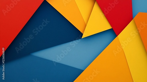 Abstract geometric background with overlapping red, orange, yellow and blue shapes