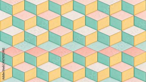 Abstract Geometric Pattern with Pastel Cubes Creates an Optical Illusion for Modern Backgrounds and Creative Designs Thirty Words Plus