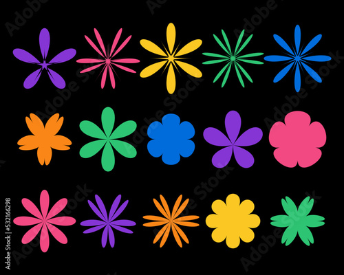 Abstract geometric shape set. Geometric flowers, colorful trendy minimalist figures