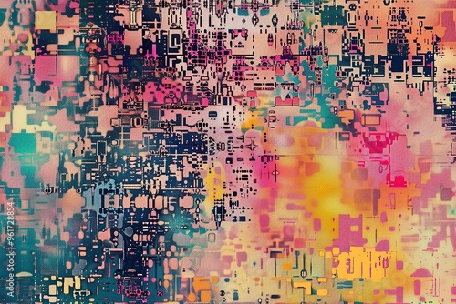 Abstract Glitch Art: Pixelated patterns and distorted shapes, conveying a digital noise aesthetic.