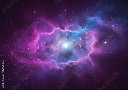 abstract glitter silver, purple, blue lights background. de-focused. banner, Cosmic nebula, vibrant purple and blue clouds, glowing pink particles, starry background