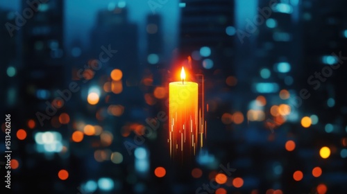 Abstract glowing big data forex candlestick chart on blurry city backdrop. Trade, technology, investment and analysis concept. Double exposure illustration , no logos, no brands