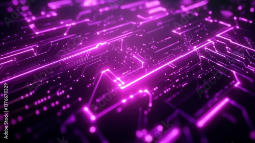 Abstract Glowing Circuit Board Background with Purple Light Trails Design