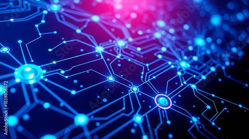 Abstract glowing digital circuit board background with soft cinematic lighting