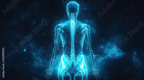 Abstract Glowing Ray Background with Human Skeleton in Neon Style