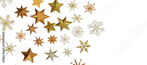 Abstract Gold Star Falling Soft Focus Background, 3D rendering.