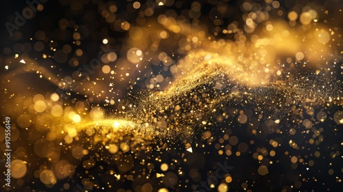 Abstract Golden Glitter and Bokeh on Black Background