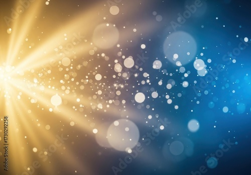 Abstract Golden Yellow and Deep Blue Gradient Background with Radiant Light Rays, Sparkling Bokeh, and Shimmering Particles, Evoking a Festive and Magical Atmosphere